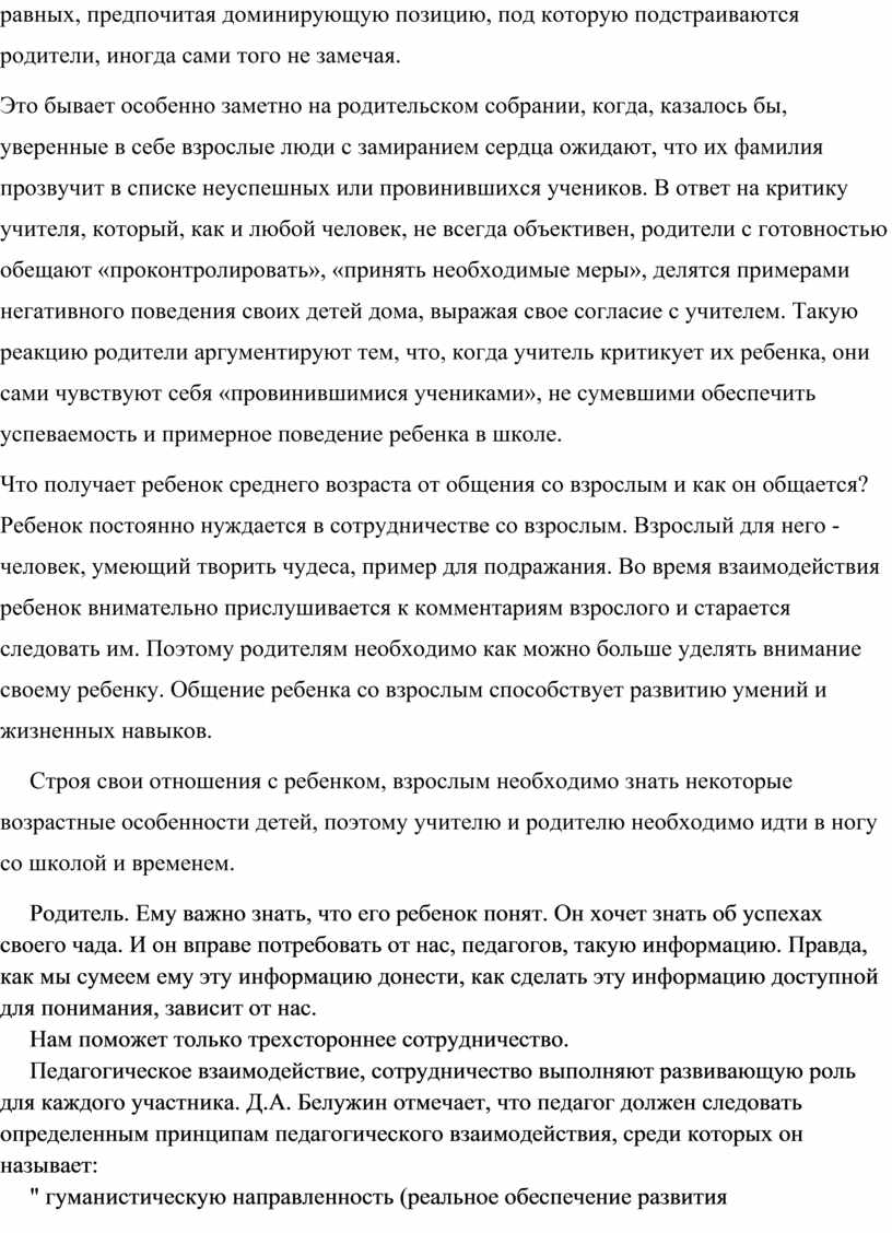 На практике часто бывает так, что родители, общаясь с педагогом, либо смотрят на него свысока, указывая, как ему работать, либо, наоборот, готовы во всем соглашаться с ним. К слову сказать, и сами педагоги не всегда готовы общаться с родителями на равных, предпочитая доминирующую позицию, под которую подстраиваются родители, иногда сами того не замечая.