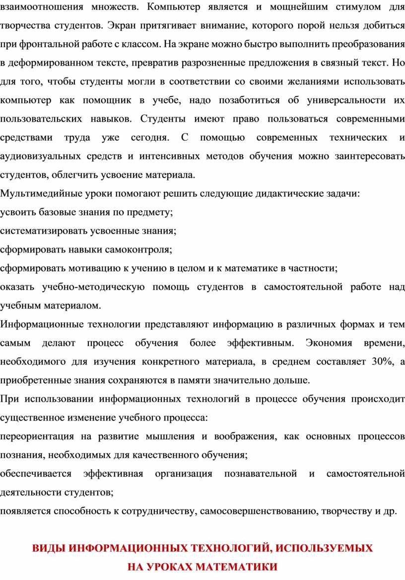 В связи с этим приоритеты в способах и методах обучения меняются от подачи готовых знаний к обучению способам поиска, хранения, выбора, качественной обработки информации и ее использования.