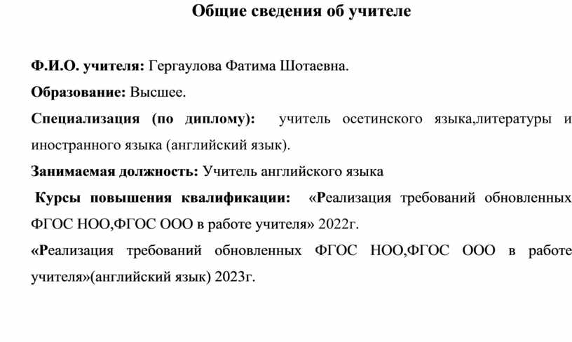 Ф.И.О. учителя: Гергаулова Фатима Шотаевна.