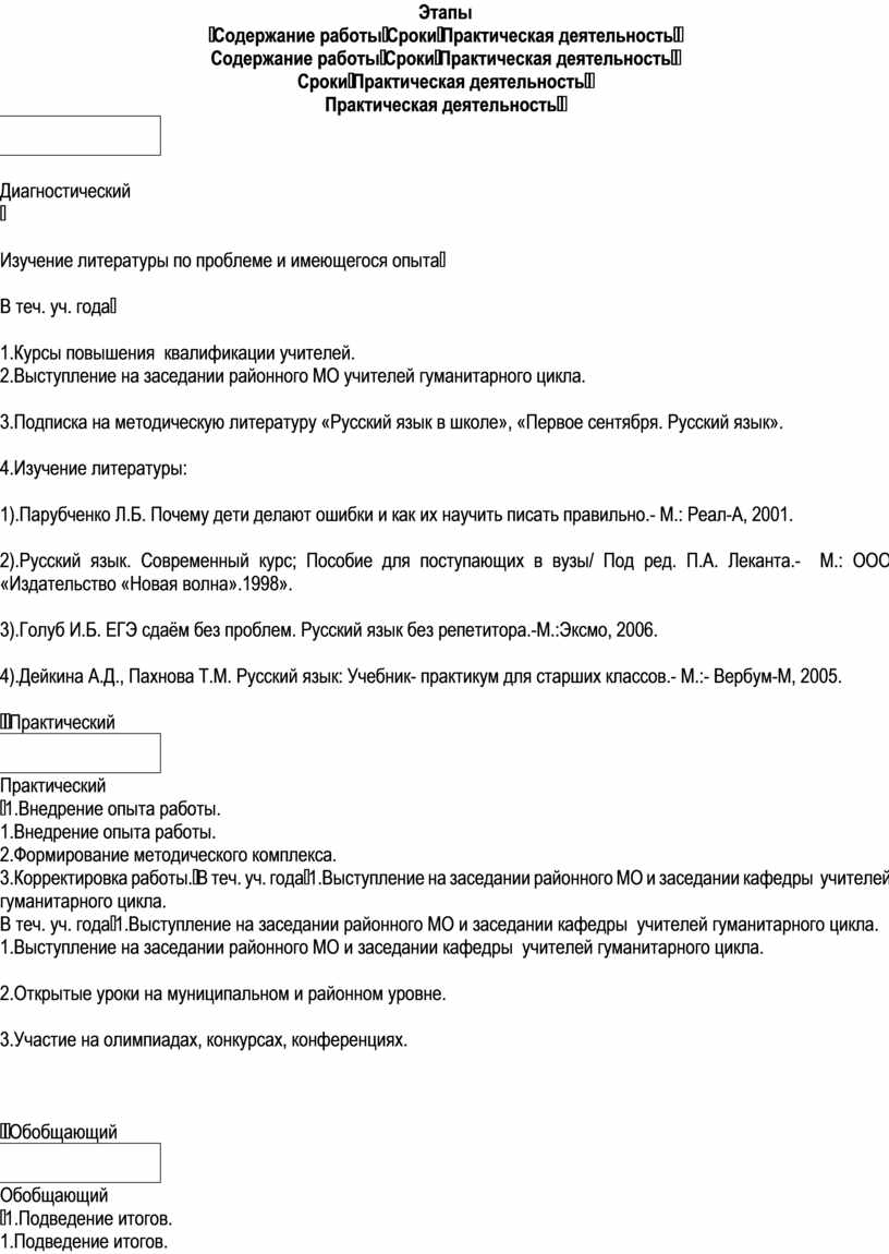 1.Внедрение опыта работы. 2.Формирование методического комплекса. 3.Корректировка работы. |