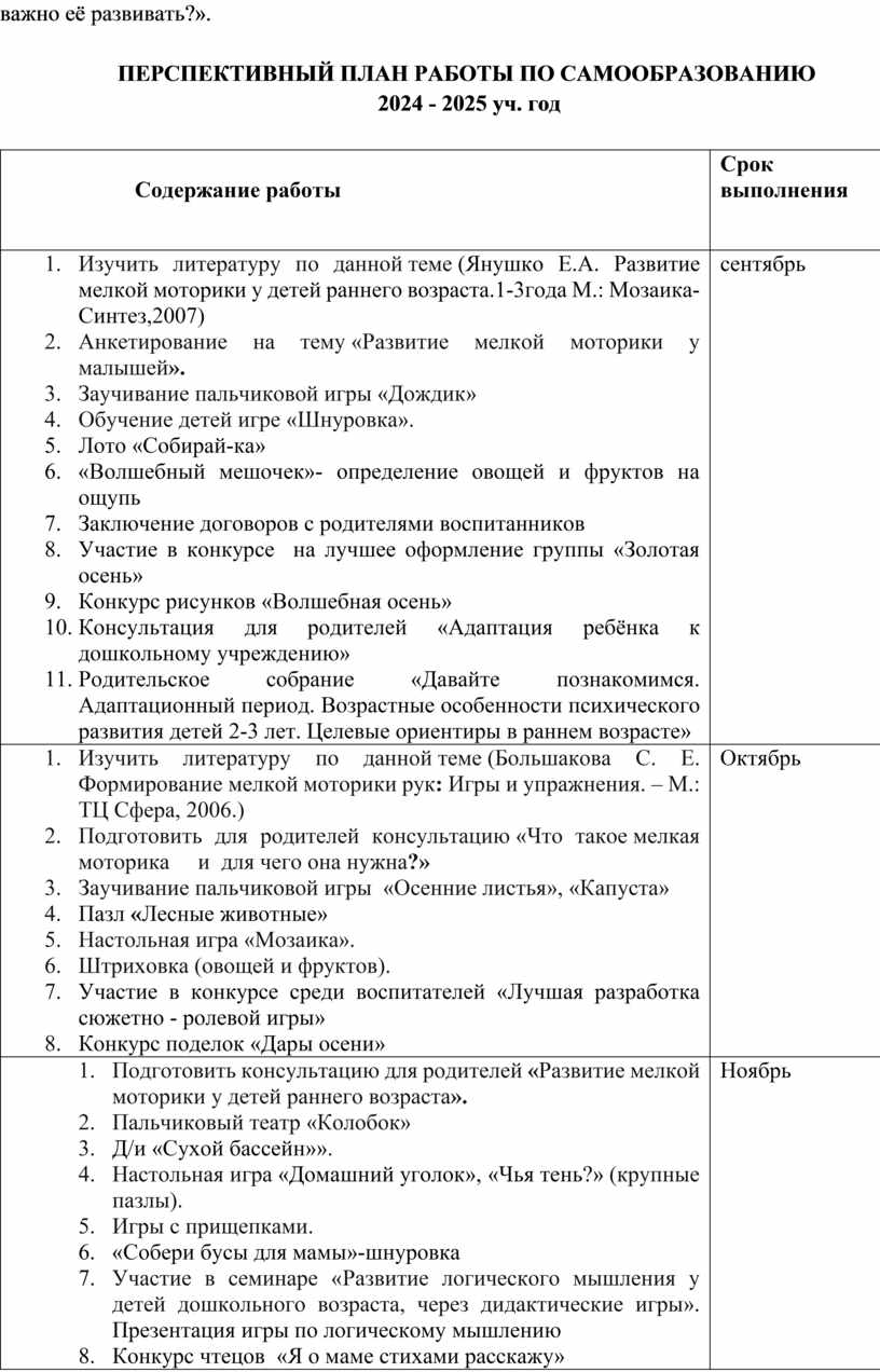План работы по самообразованию.