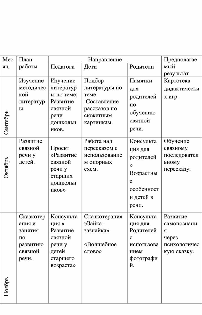Изучение литературы по теме; Развитие связной речи дошкольников. |