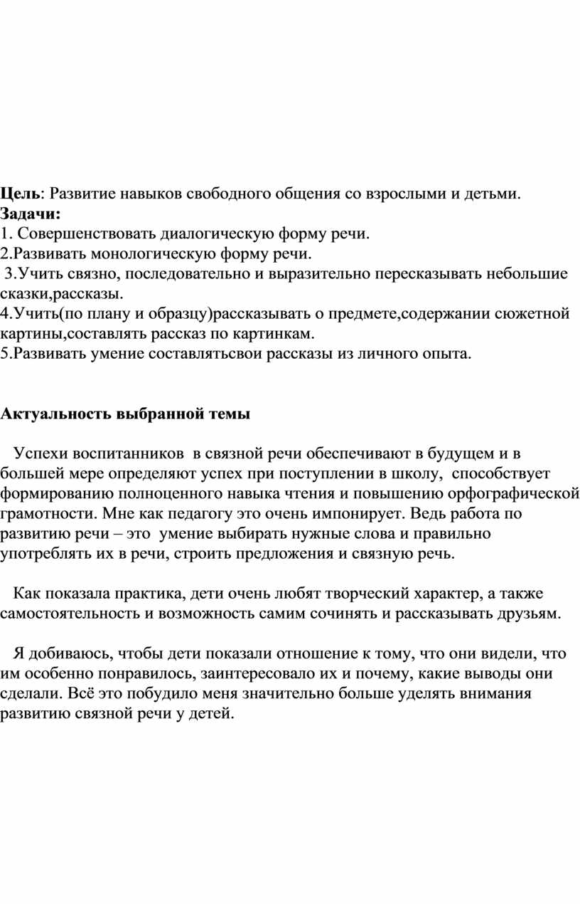 Цель: Развитие навыков свободного общения со взрослыми и детьми.