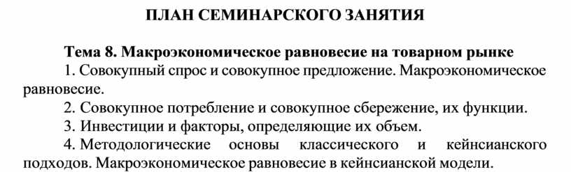 Тема 8. Макроэкономическое равновесие на товарном рынке