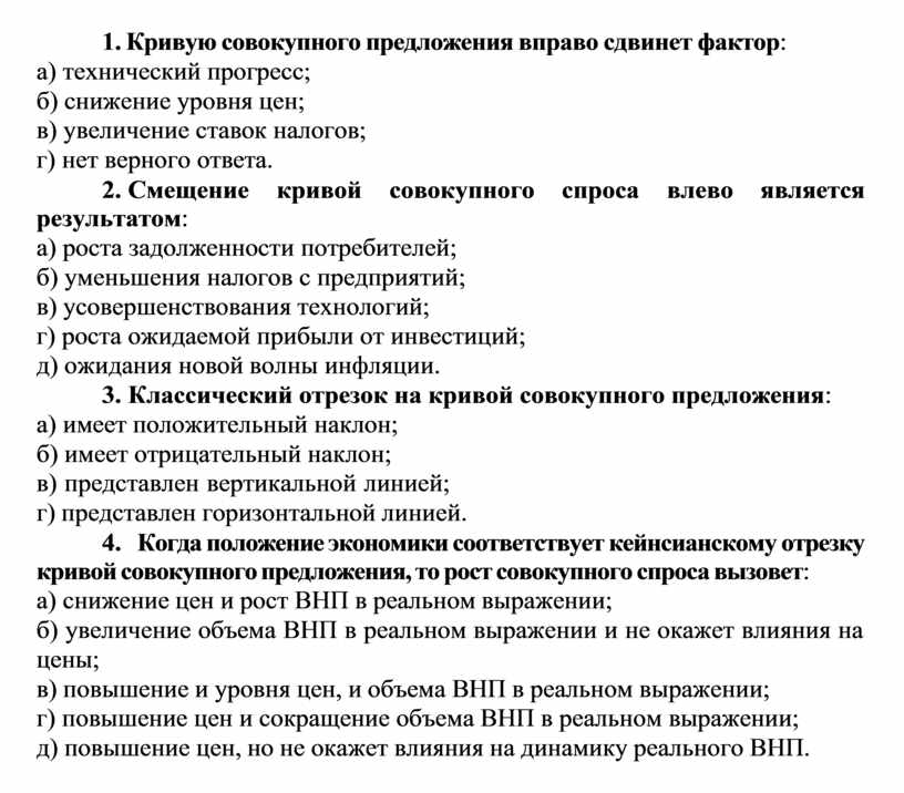 7. Кривую совокупного предложения вправо сдвинет фактор: а) технический прогресс;