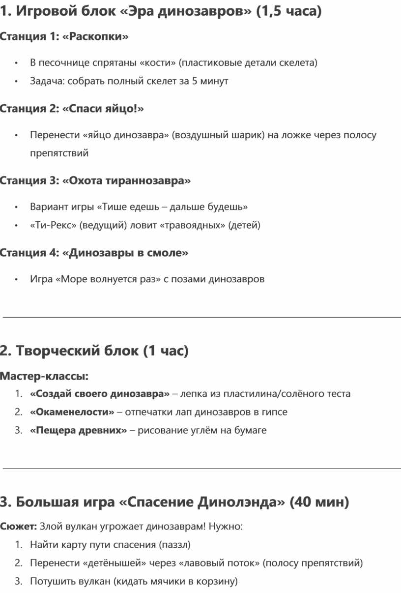 Цель: Развитие познавательного интереса, физической активности и творческих способностей через тему динозавров.