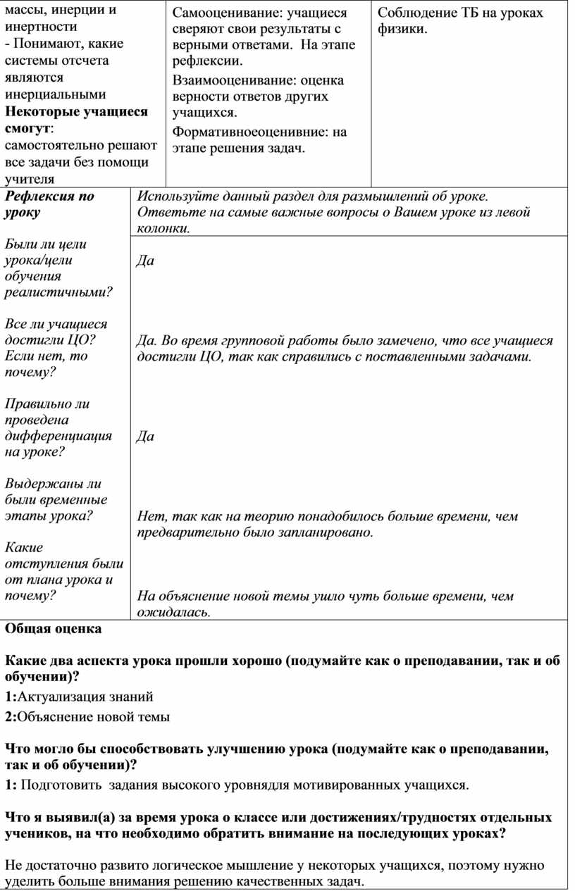 Используйте данный раздел для размышлений об уроке. Ответьте на самые важные вопросы о Вашем уроке из левой колонки. |