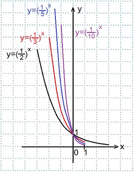 3)Чем меньше основание а (при 0<a<1) показательной функции у=ах, тем ближе расположена кривая к оси Оу.