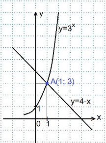 Графики пересеклись в точке А(1; 3). Ответ: 1.