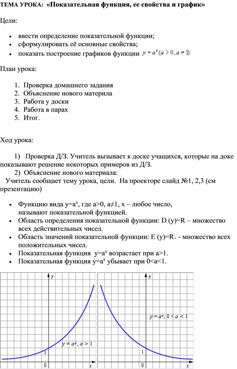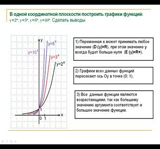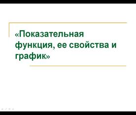 ТЕМА УРОКА: «Показательная функция, ее свойства и график»