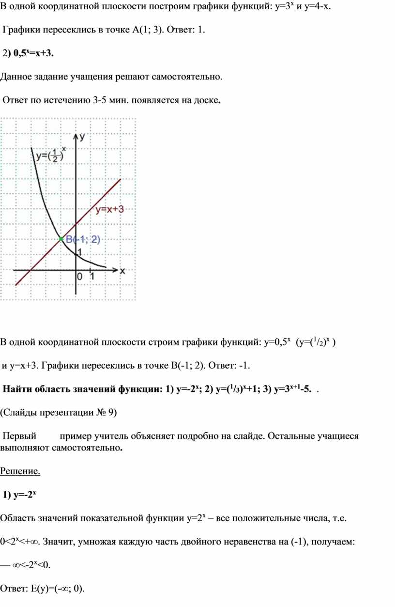 Задание для выполнения у доски: В одной координатной плоскости построить графики функций: