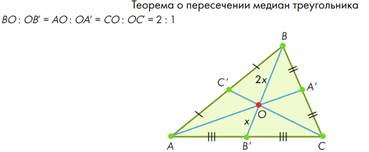 треугольника пересекаются в одной точке, которая делит каждую медиану в