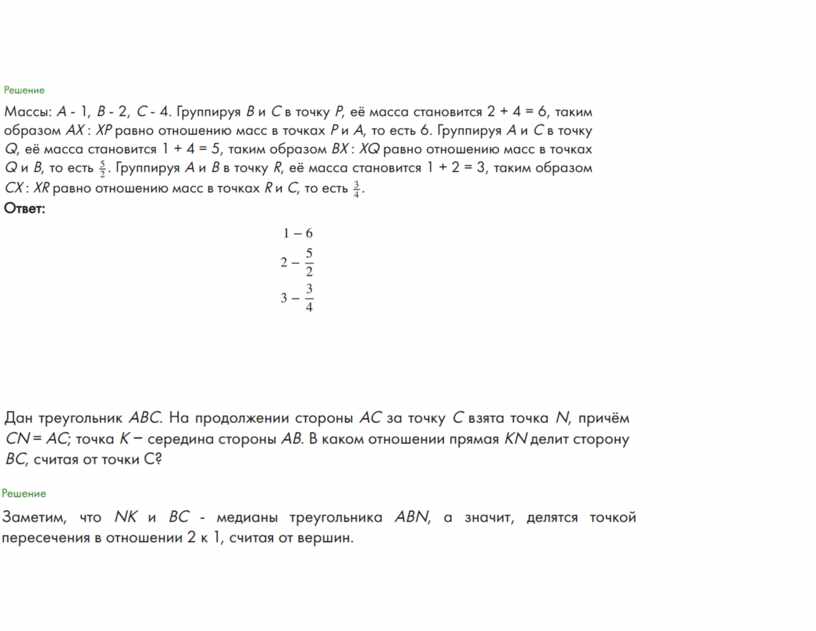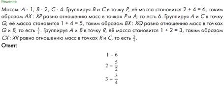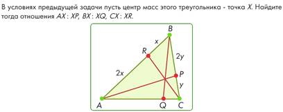 3) Третья задача уже не столько на геометрию масс, сколько о свойствах непосредственно центра масс треугольника.