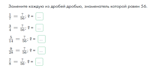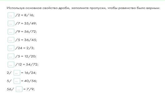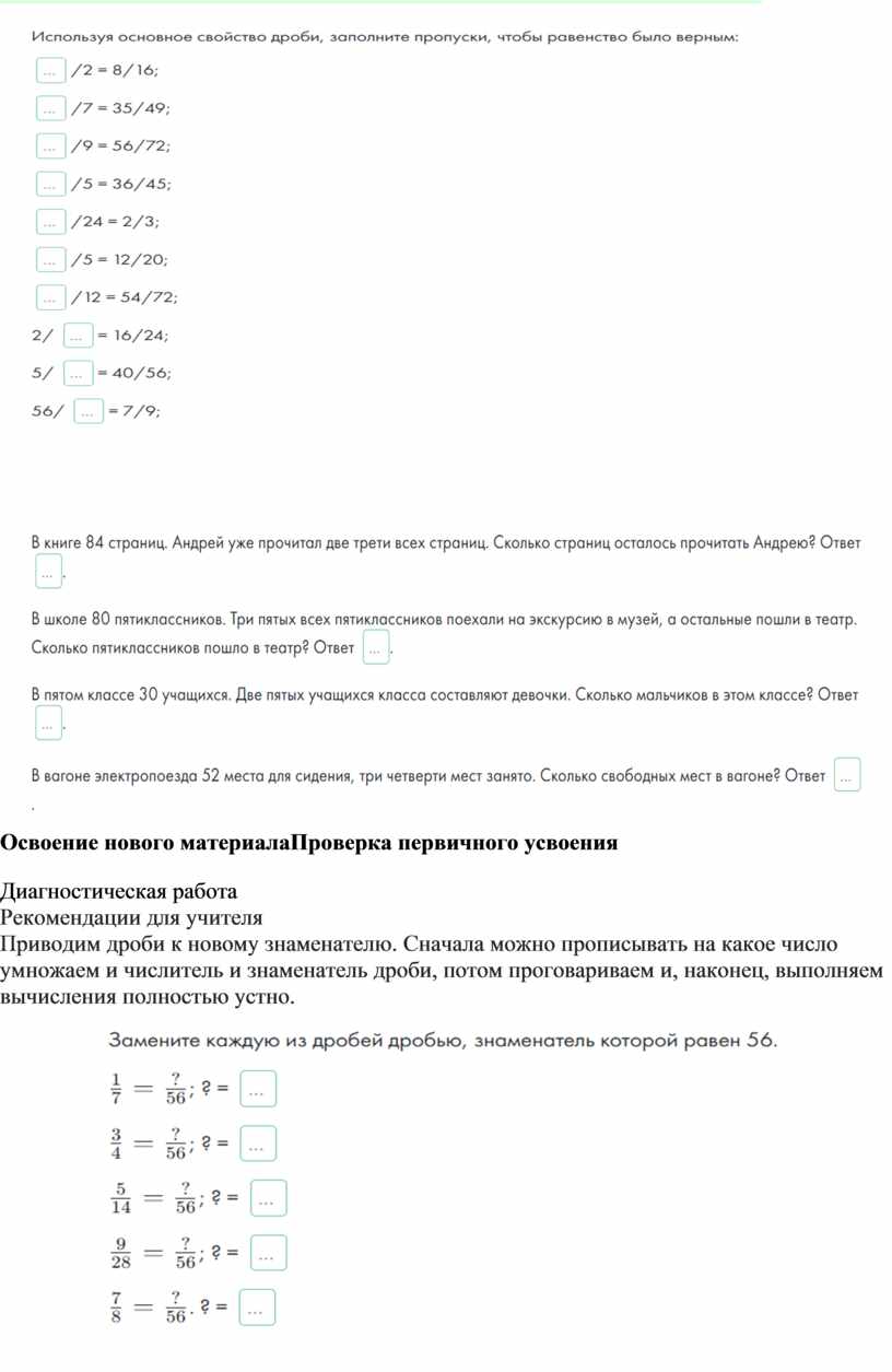 Контролируемые элементы содержанияОбыкновенная дробь, основное свойство дроби