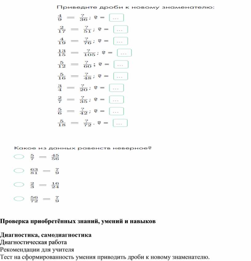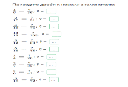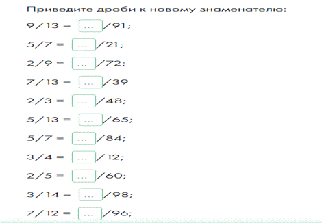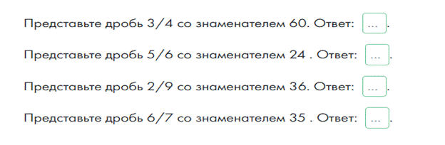 Тест на сформированность умения приводить дроби к новому знаменателю.