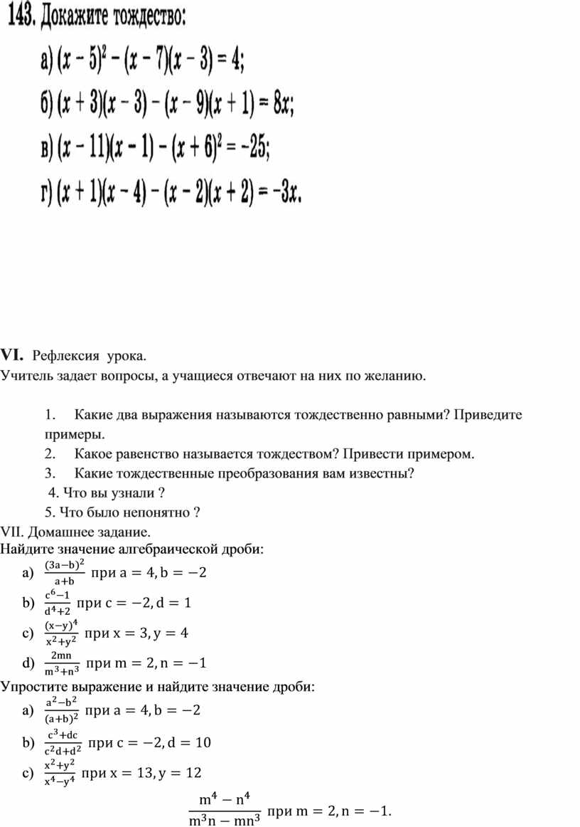 1. Какие два выражения называются тождественно равными? Приведите примеры.