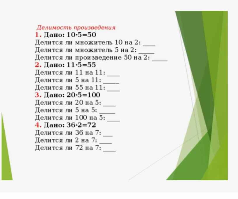 Перед выполнением данного задания вспомните фронтально признаки делимости на 2, на 3, на 5 и на 10.