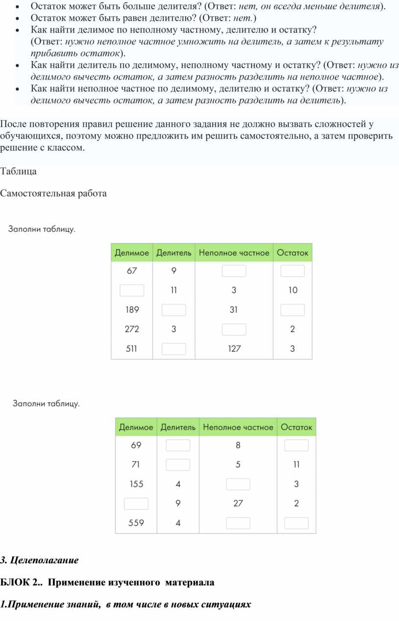 Тема: Решение текстовых задач, содержащих деление с остатком