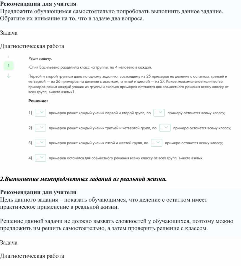Цель данного задания – показать обучающимся, что деление с остатком имеет практическое применение в реальной жизни.