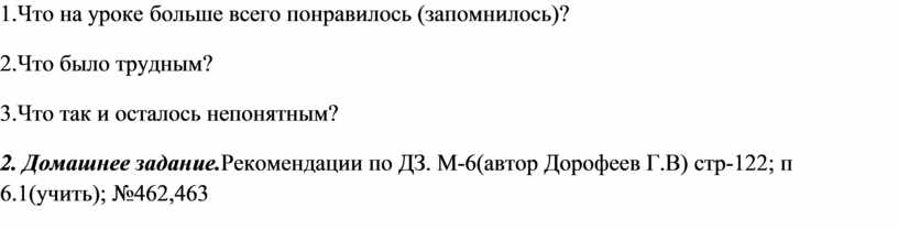 2. Домашнее задание.Рекомендации по ДЗ. М-6(автор Дорофеев Г.В) стр-122; п 6.1(учить); №462,463