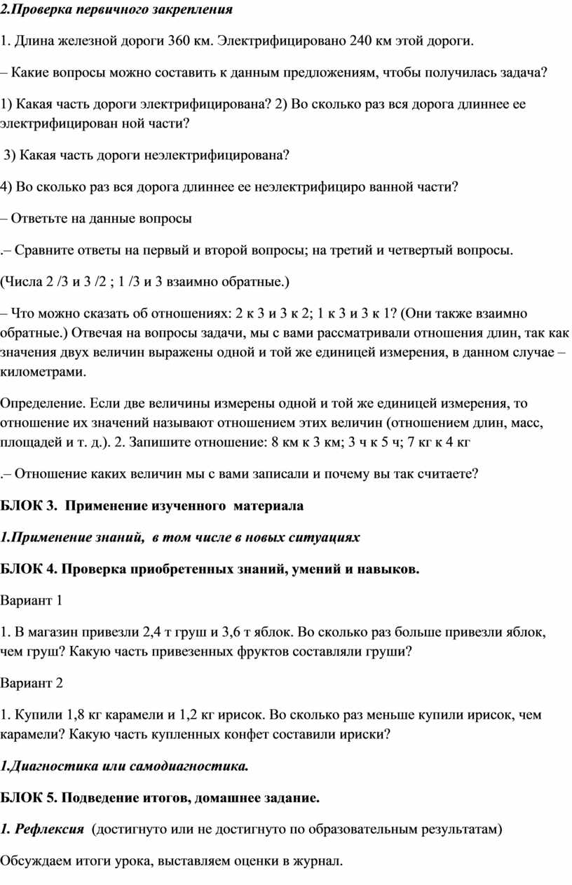 Краткое описание: Урок по предмету «Математика» для 6 класса по теме «Отношение двух чисел». Урок освоения новых знаний и умений. На уроке предусмотрено использование следующих типов электронных образовательных материалов: «Диагностическая работа», «Изображение или фото», «Самостоятельная работа».