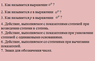 2.Актуализация опорных знаний. Повторение свойств степени срациональным показателем.