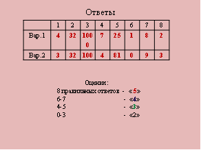 Учащиеся выполняют самостоятельную работу, работая группами по 4 человека, консультируя друг друга. Затем работы сдаются на проверку.