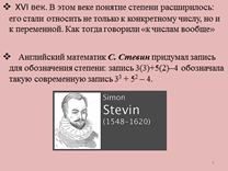 говорили «к числам вообще»Английский математикС. Стевин придумал запись