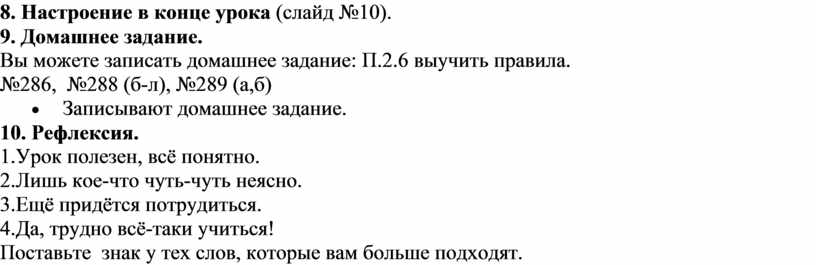 8. Настроение в конце урока (слайд №10).