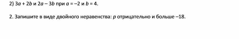 2. Запишите в виде двойного неравенства: р отрицательно и больше –18.