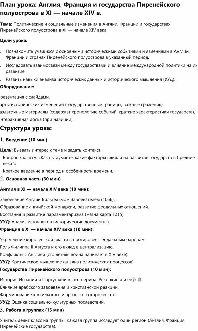 Тема: Политические и социальные изменения в Англии, Франции и государствах Пиренейского полуострова в XI — начале XIV века
