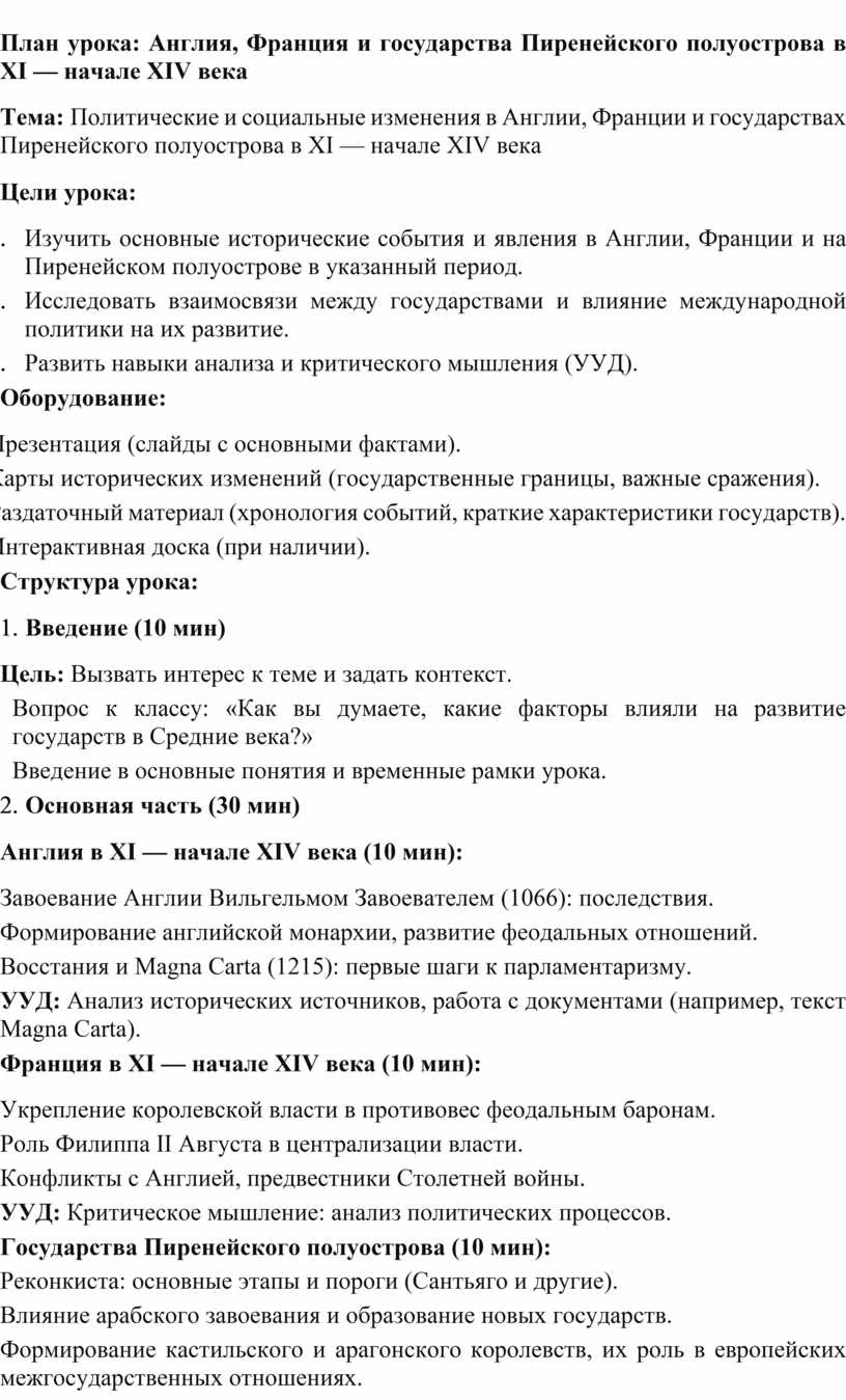 Тема: Политические и социальные изменения в Англии, Франции и государствах Пиренейского полуострова в XI — начале XIV века