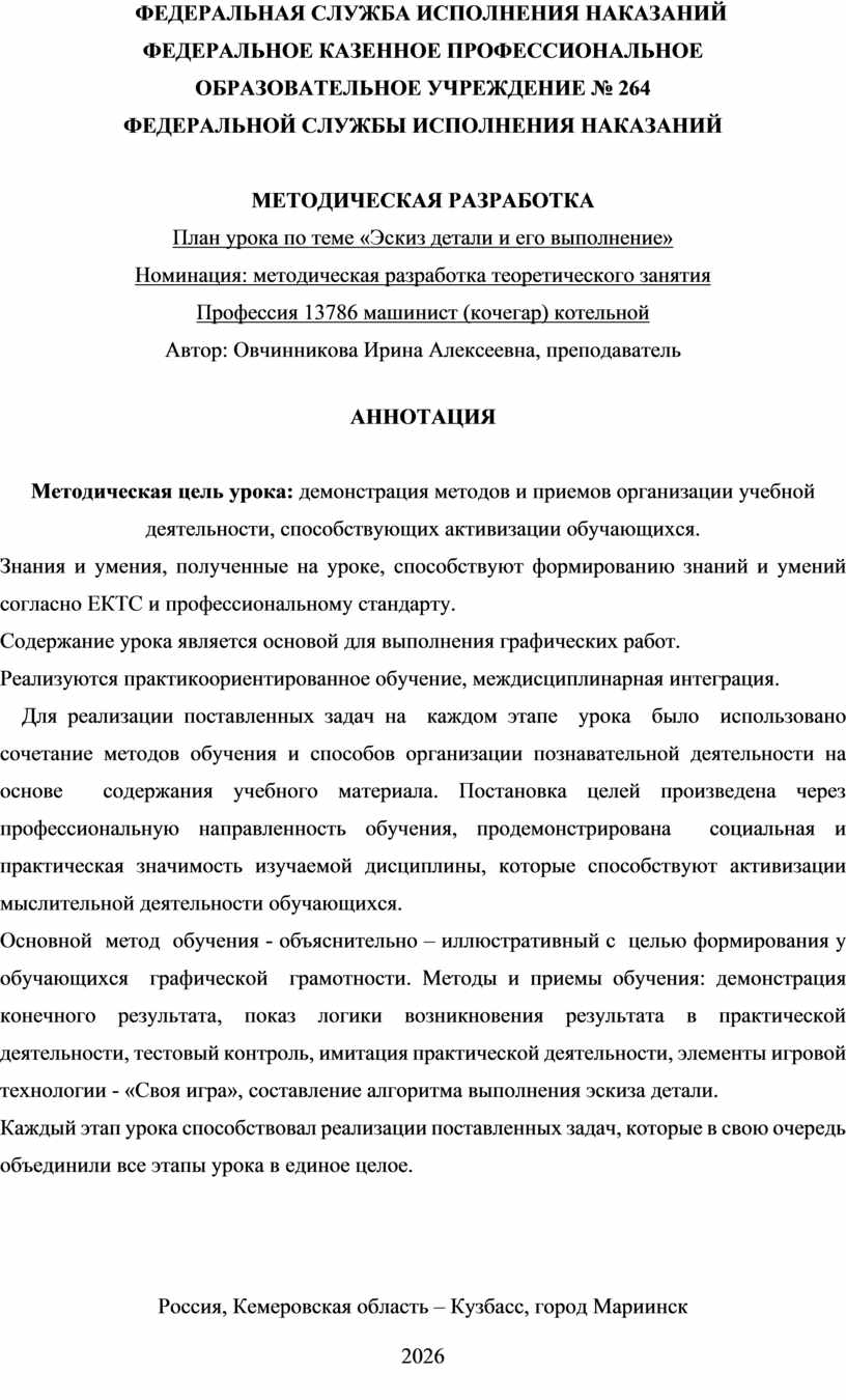 Преподаватель: Овчинникова И.А., ФКП образовательное учреждение № 264