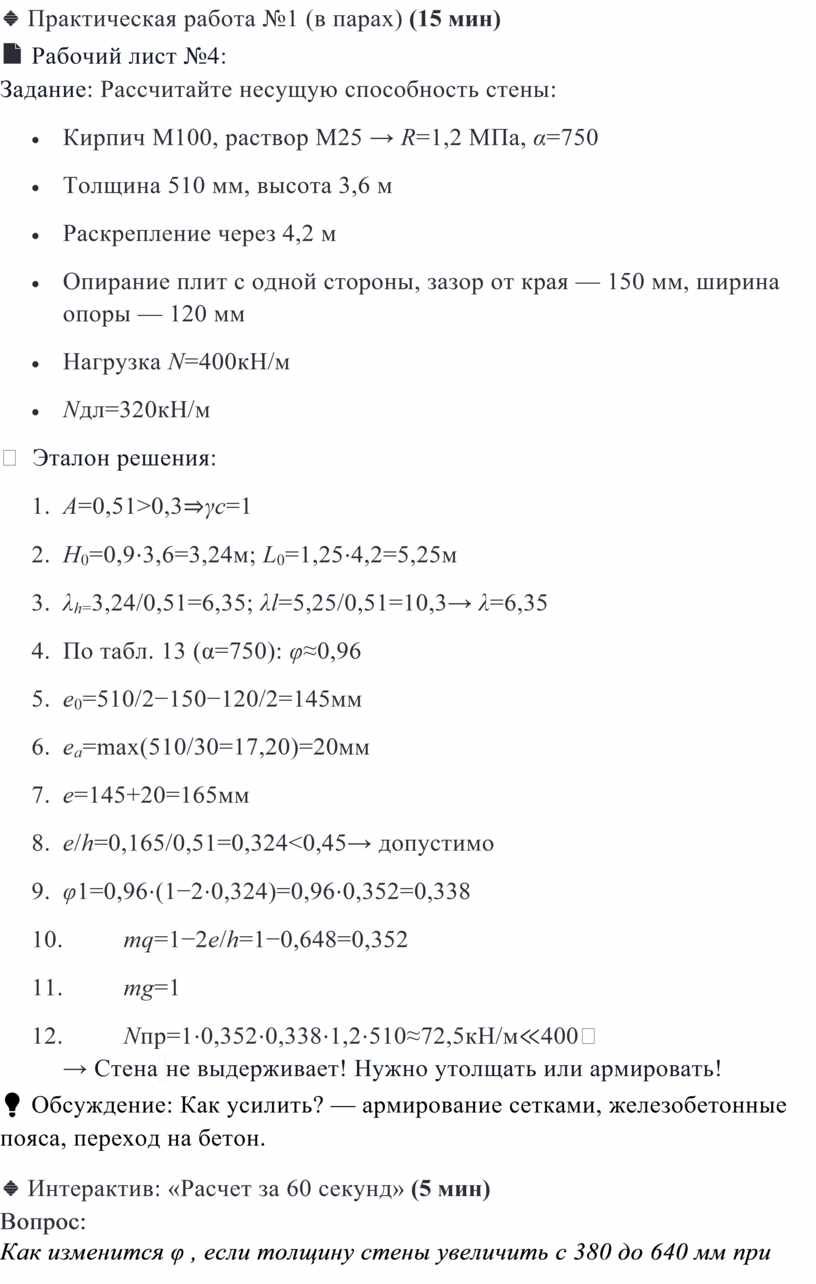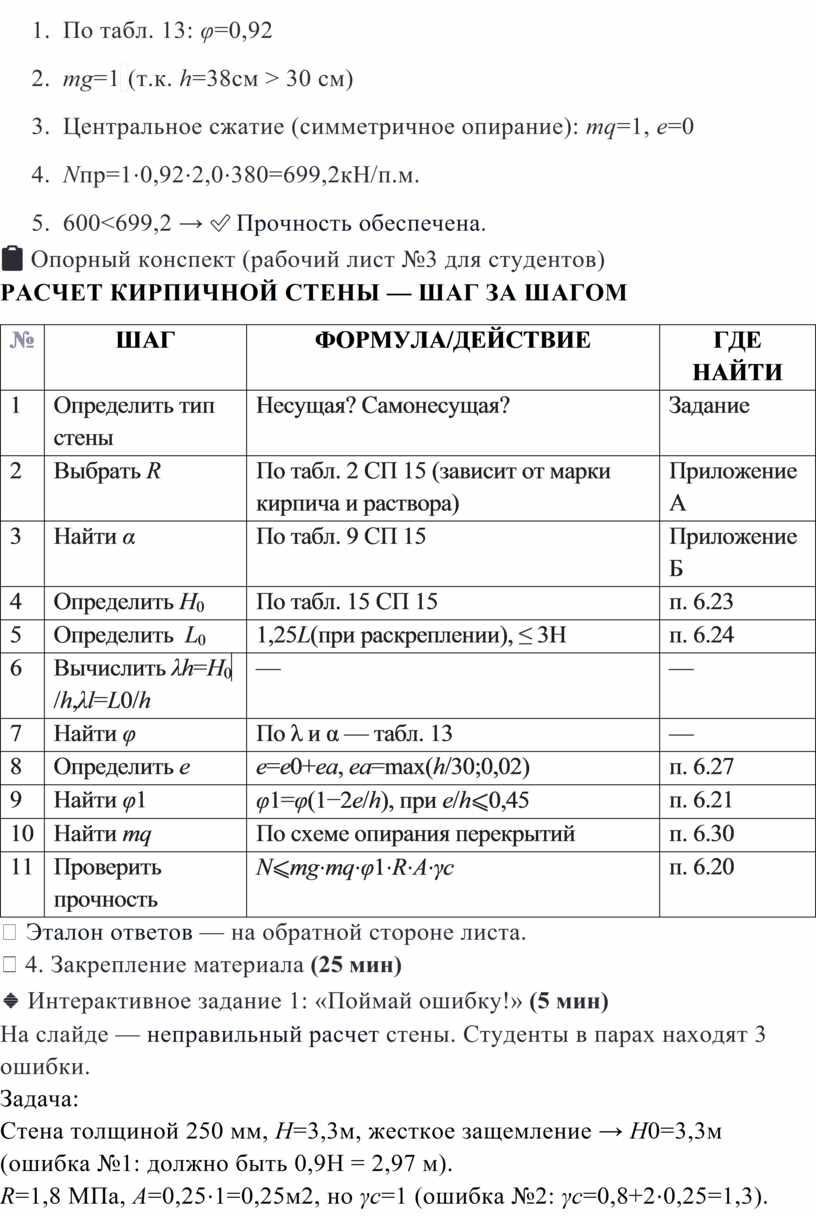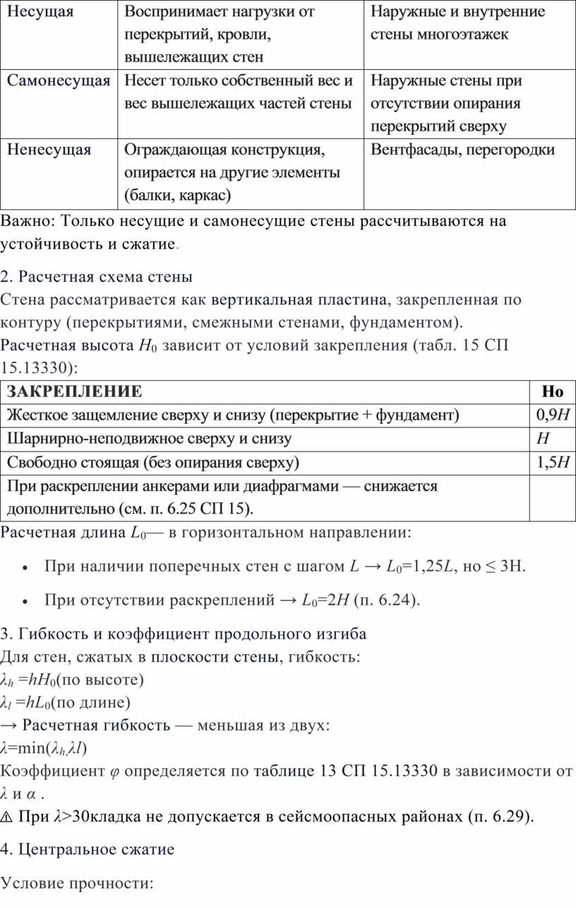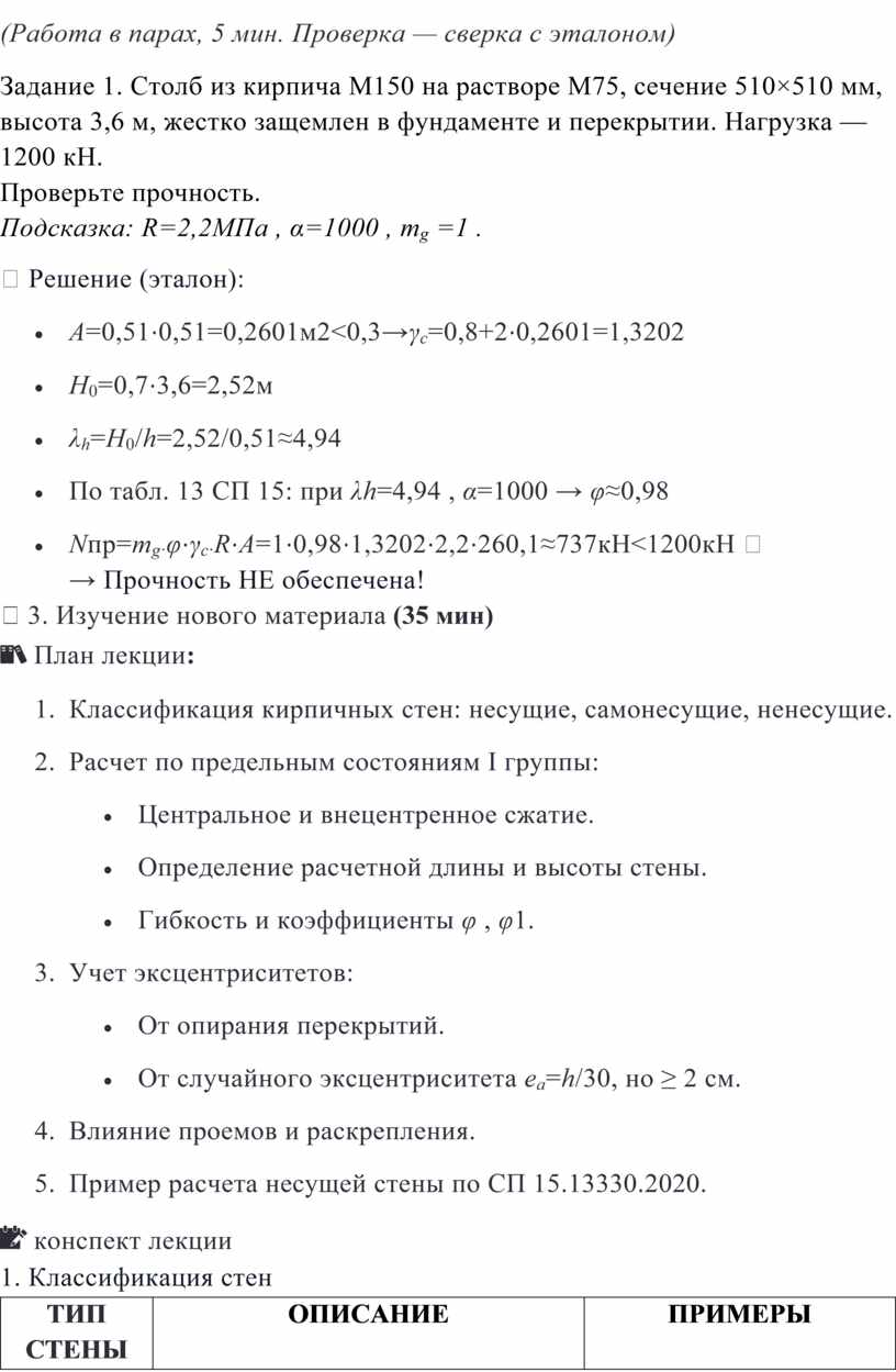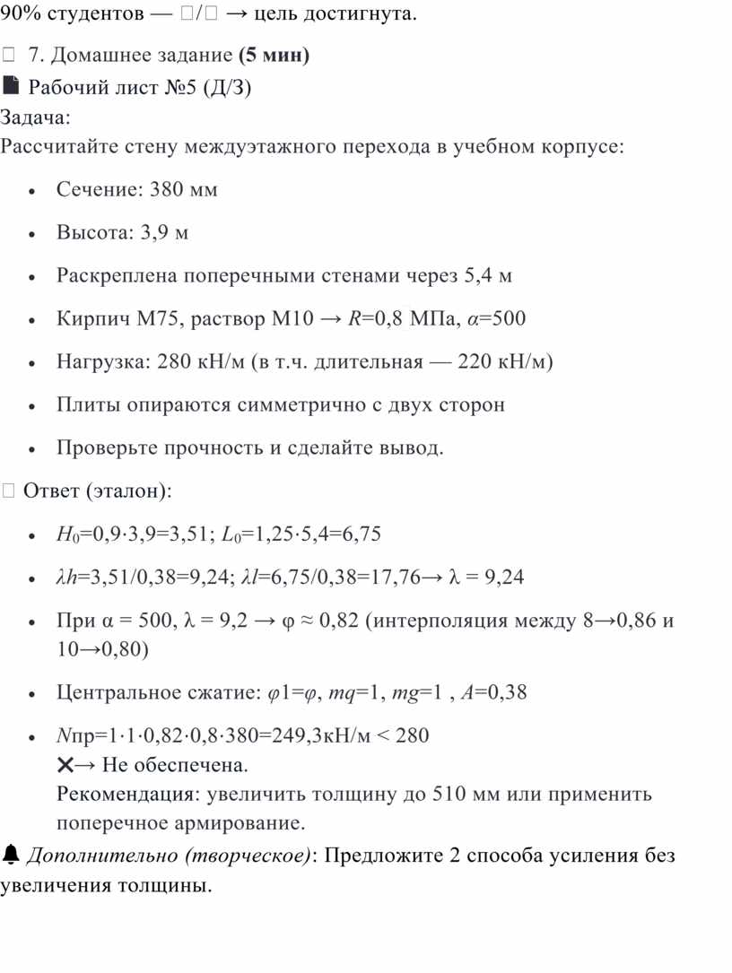🔹 Тема урока: Расчет кирпичных стен на прочность, устойчивость и деформации