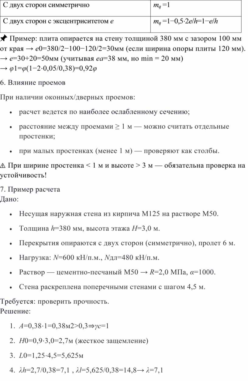 5. Пример расчета несущей стены по СП 15.13330.2020.
