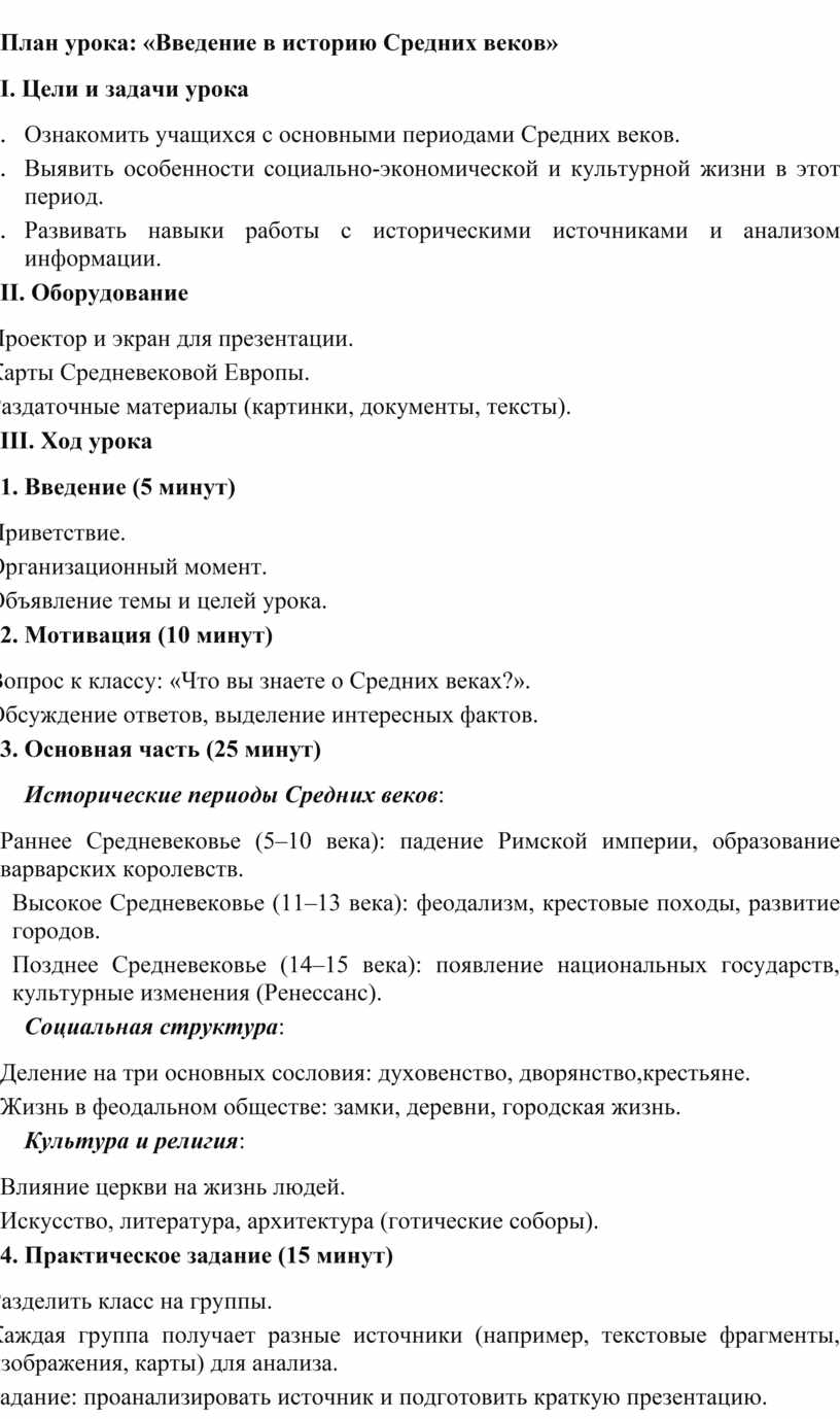 Вопрос к классу: «Что вы знаете о Средних веках?».