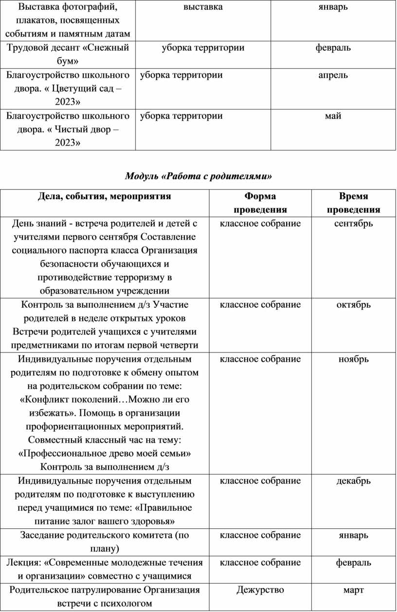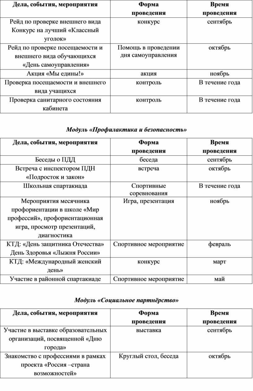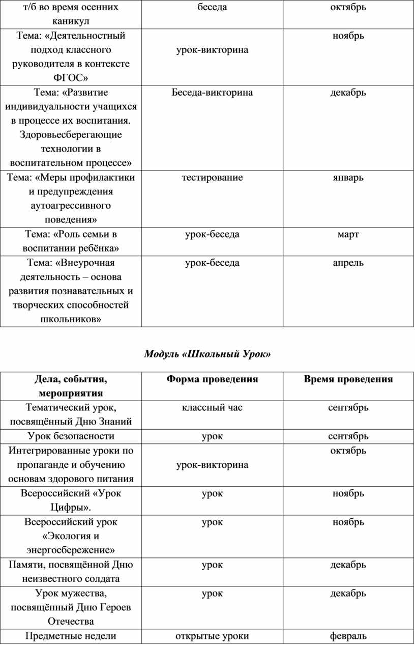 В план воспитательной работы класса были включены классные часы и мероприятия, направленные на воспитание дружелюбия, ответственности, дисциплины, патриотизма. Проводились тематические классные часы, часы общения, индивидуальные беседы с учащимися и родительские собрания для того, чтобы ребёнок как можно лучше чувствовал себя в коллективе класса, чтобы каждый был услышан, понят, принят таким, какой он есть.