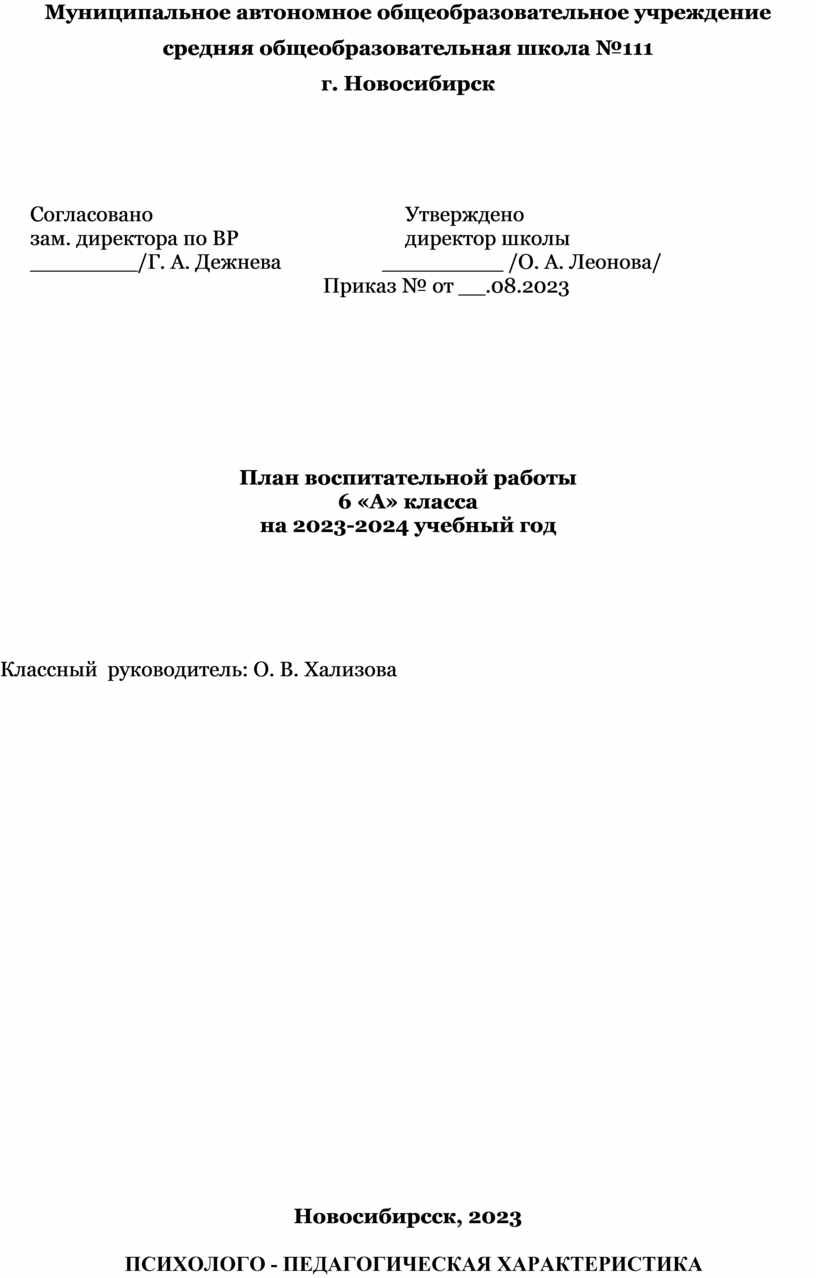 ПСИХОЛОГО - ПЕДАГОГИЧЕСКАЯ ХАРАКТЕРИСТИКА