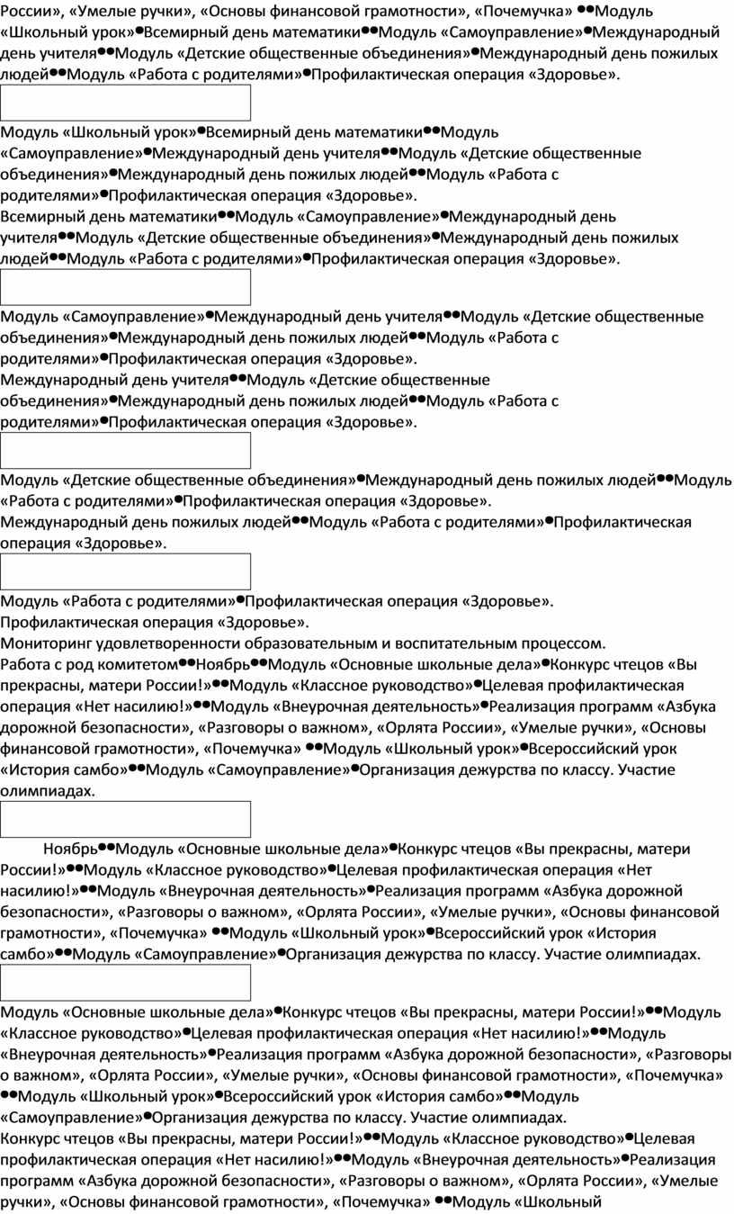 В формировании и развитии классного коллектива в течение учебного года достигнуты положительные результаты. В классе сложился хороший психологический микроклимат. Большинство ребят стараются быть доброжелательными, самостоятельными, активными. В классе есть ребята с высокой степенью нравственной ориентации, которые влияют на общественное мнение в коллективе. У каждого ребенка в классе есть свои поручения, с которыми ребята в большинстве справляются. Ученическое самоуправление в классе находится на стадии развития. Постоянно проводится работа над культурой поведения, дисциплиной. В значительной мере формированию навыков взаимоотношений между людьми, культуры поведения в общественных местах способствовало проведение классных часов и бесед: «Правила общения», «Мои лучшие поступки», «Наш класс на перемене»; «Мои права и обязанности «и др.