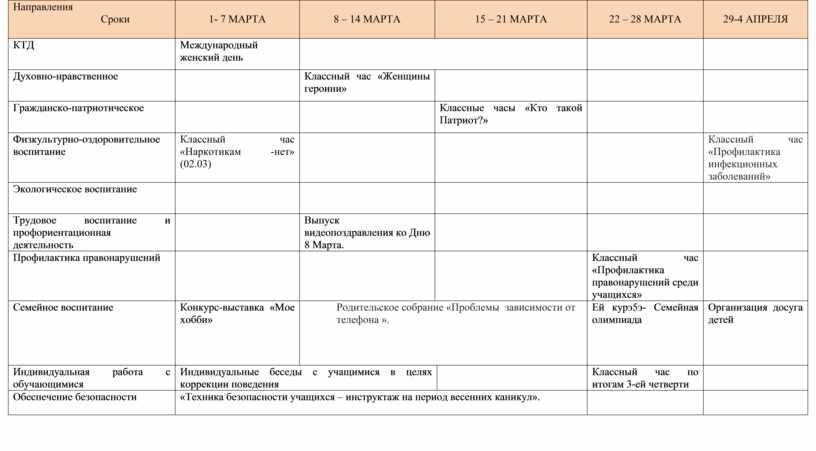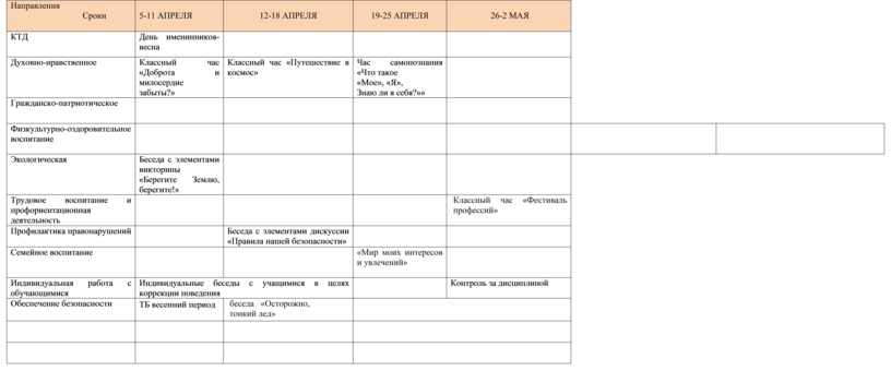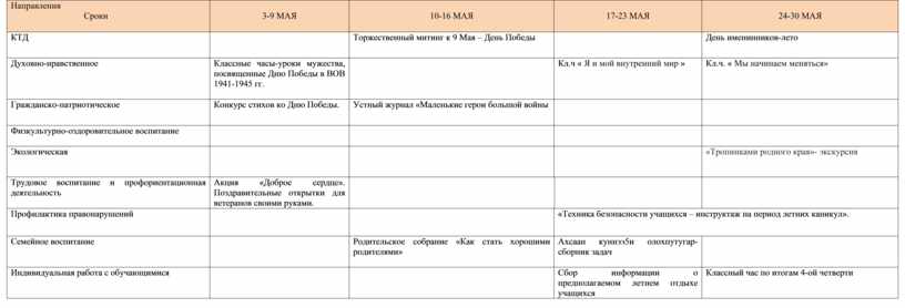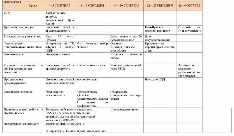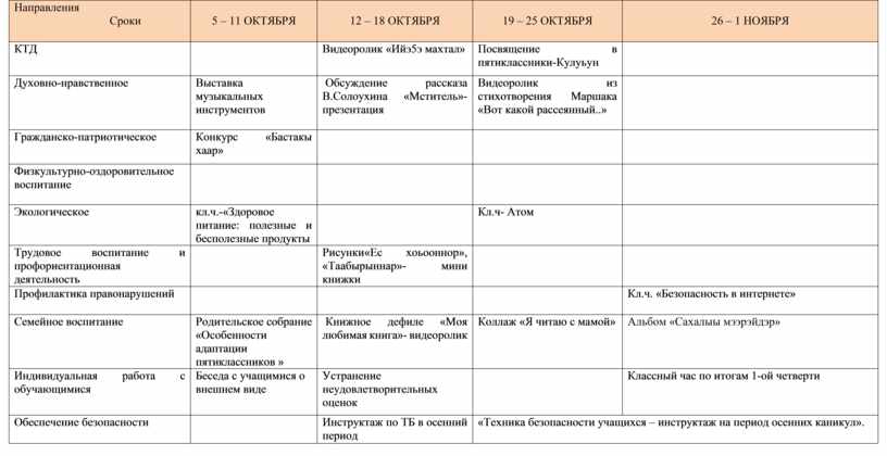 Работа с классным коллективом по направлениям: