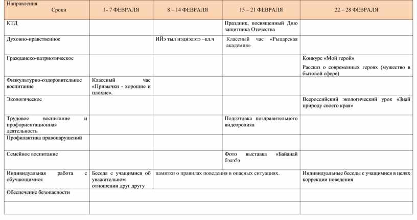1. Формировать у обучающихся такие качества, как долг, ответственность, честь, достоинство, личность. 2. Воспитывать любовь и уважение к традициям Отечества, школы, семьи. 3. Воспитание уважения к правам, свободам и обязанностям человека |