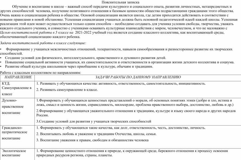 Целью воспитательной работы в 5 классе на 2021-2022 учебный год является создание классного коллектива, как воспитывающей среды, обеспечивающей социализацию каждого ребенка.