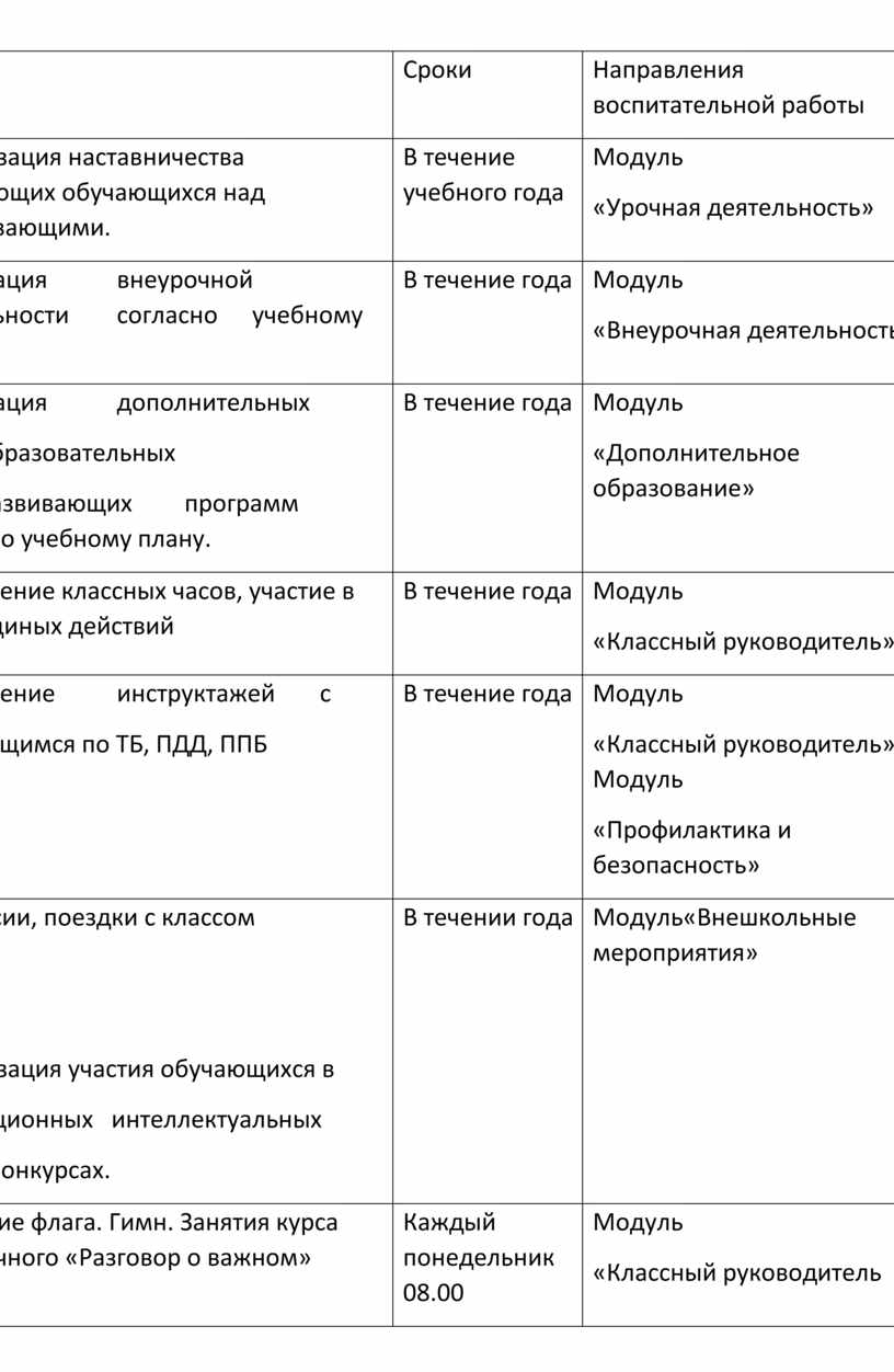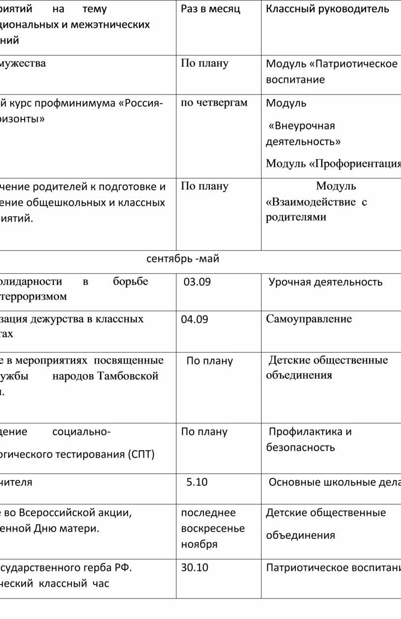 Модуль «Классный руководитель» Модуль «Профилактика и безопасность» |