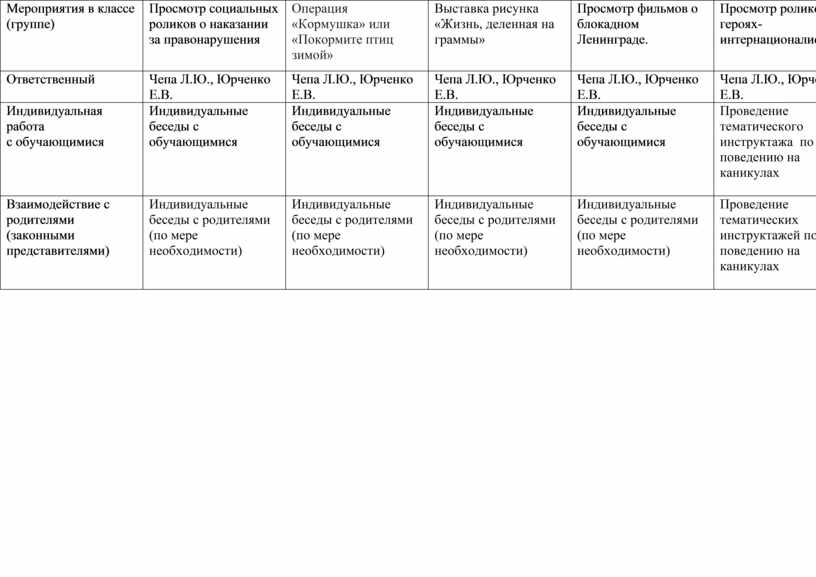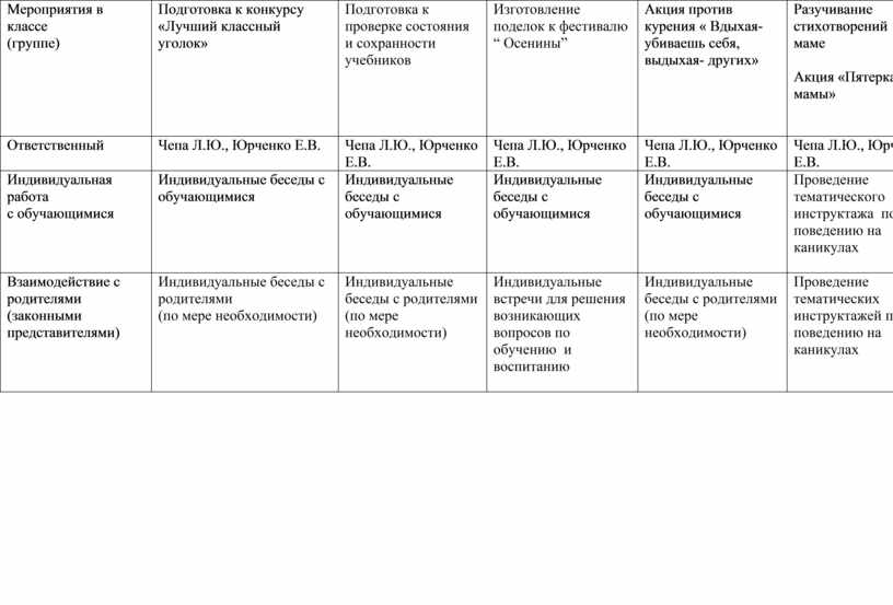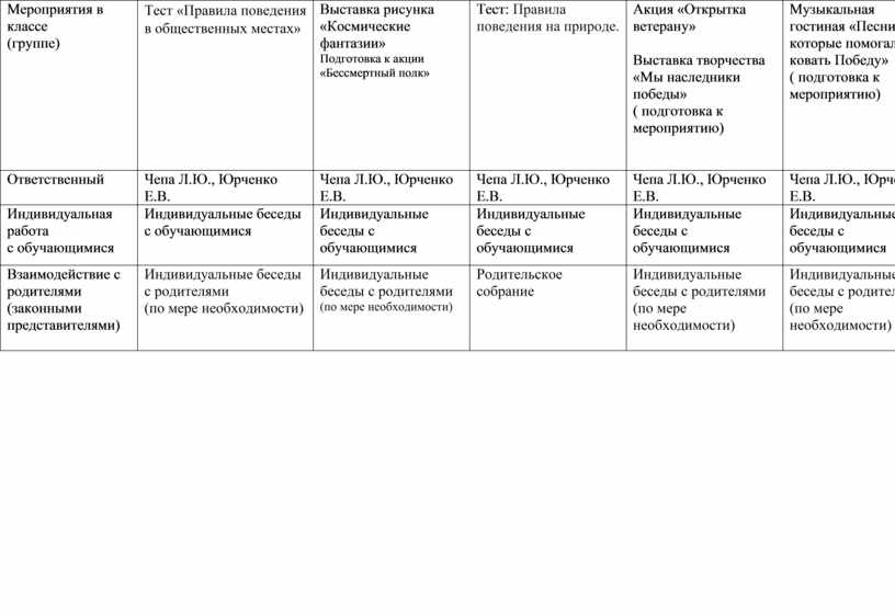 Мероприятия в классе (группе) |