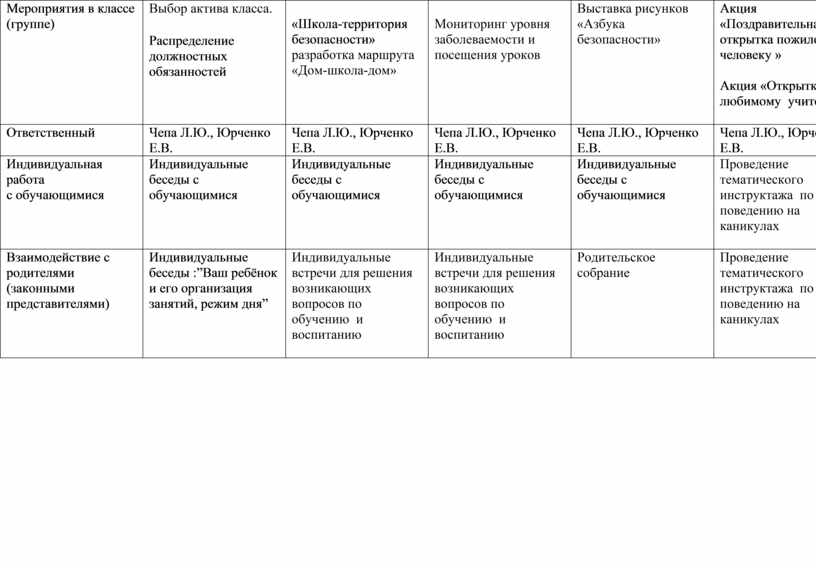 1. Восп. час «Всероссийский урок безопасности» 2.Беседа «Этикет поведения в школе»