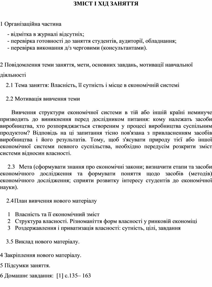 2.1 Тема заняття: Власність, її сутність і місце в економічній системі