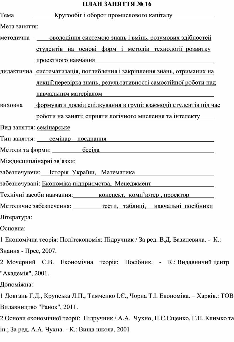2.1 Тема заняття Кругообіг і оборот промислового капіталу