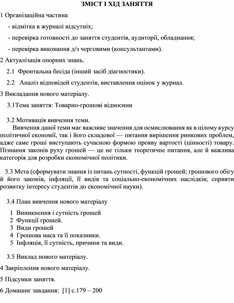 3.3 Мета (сформувати знання із питань сутності, функцій грошей; грошового обігу й його законів, інфляції, її видів та соціально-економічних наслідків; сприяти розвитку інтересу студентів до економічної науки).