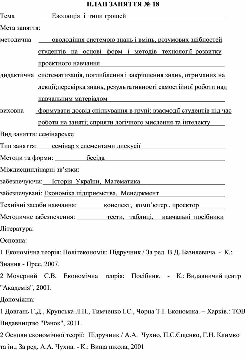 ПЛАН ЗАНЯТТЯ № 18