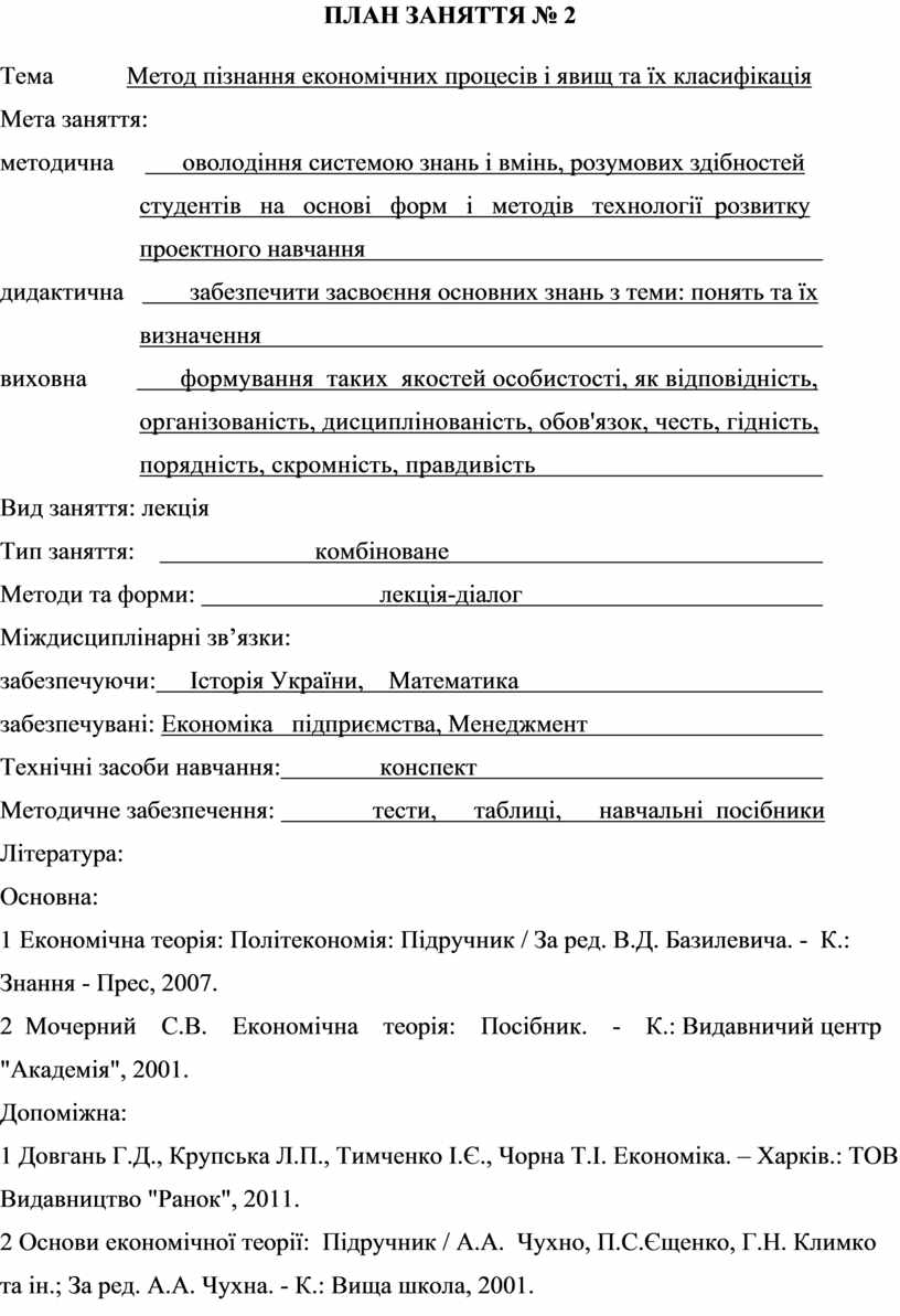 2.1 Тема заняття Метод пізнання економічних процесів і явищ та їх класифікація